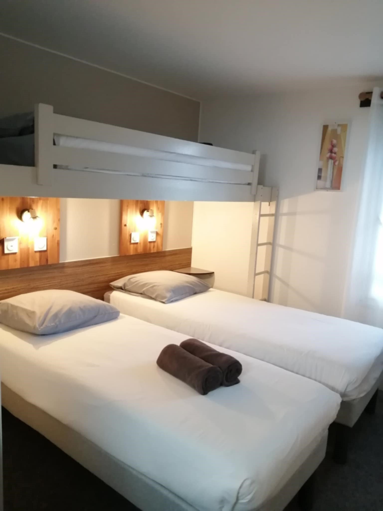 3 lits simples séparés ou 1 grand lit et 1 lit simple séparé